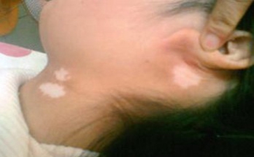 三、皮损逐渐的发展扩大,黑色素完全的脱失,与正常的皮肤分界清楚,呈乳白色或是瓷白色,大小不等,形状不定,可是为圆形,椭圆形,地图形等。