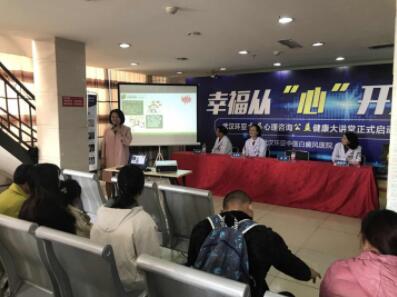2019年4月7日上午,武汉环亚首届心理咨询健康公益大讲堂正式开启。武汉环亚中医白癜风医院特邀国家二级心理咨询师杨杰老师作为大讲堂的主讲老师。包括徐慧珍院长、杨杰老师、帅海林主任、金云桂主任以及医护人员出席了此次大讲堂启动仪式。
